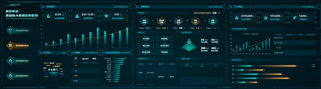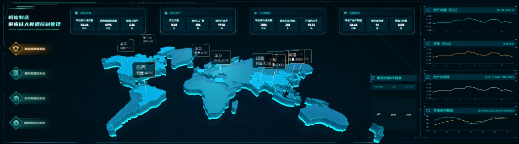 实现供应链管理平台全供应链关键指标监控、供应链管理平台感知资金风险波动、供应链管理平台3D视角钻取、模型透视等。