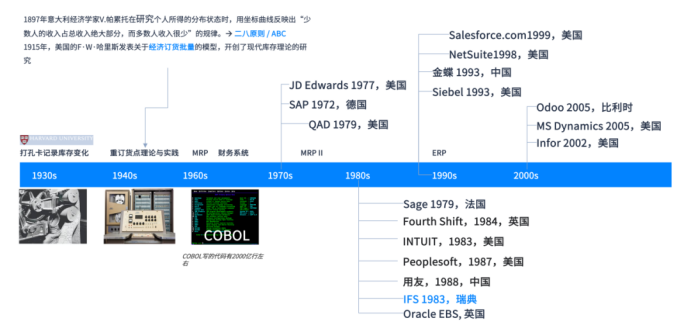 自从企业这种组织形式出现以来,人们对企业管理的研究和实践从未止步,从侧重于生产效率提升的古典管理理论到五要素(战略、组织、流程、计划、文化)全面发展的现代管理理论,对企业的管理者提出很大的挑战,加上20世纪60年代前后计算机的发展到了一定的水平,因此,信息技术与管理理论就结合在了一起,从而推动ERP这个概念的产生以及一系列企业软件的出现和生态系统的建立。