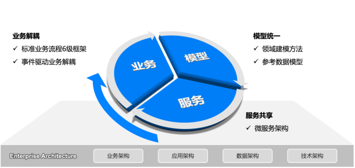 ERP系统的设计咨询按照承接企业架构(Enterprise Architecture)方法,融合业务蓝图、领域模型、中台服务“三位一体”的一体化设计方法论,支持业务和信息系统的持续创新。