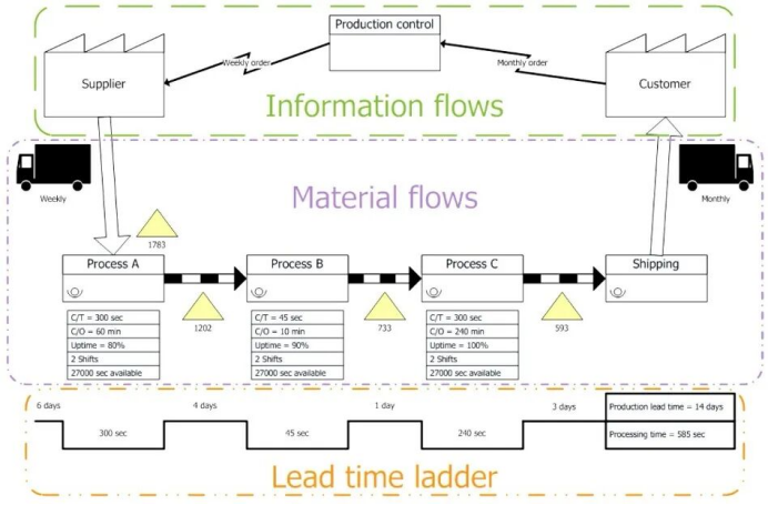 它通过图形化的方式展示了物料的流动路径和信息传递的机制,帮助团队全面理解流程的各个环节及其相互关系。