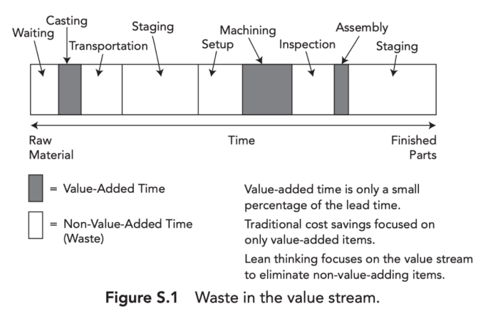 工作流程通过持续改进(改善)被重新设计,以消除浪费(无用功),如过度生产和等待时间。