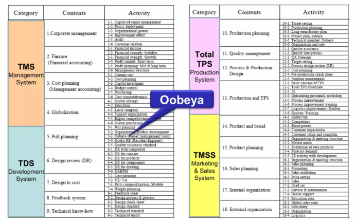 TMSS是营销系统,包括了品牌管理、产品计划、销售计划、内外部组织管理,可以看出丰田的营销与产品计划是紧密结合。