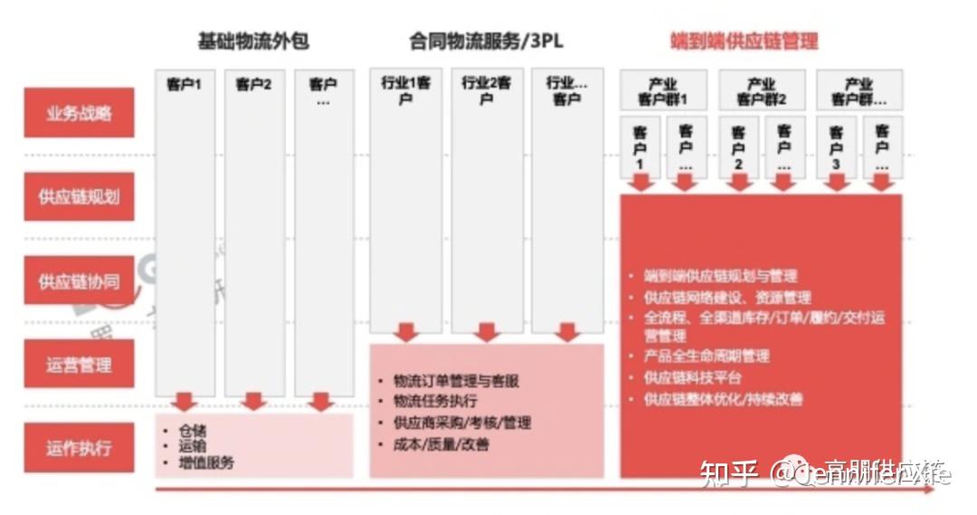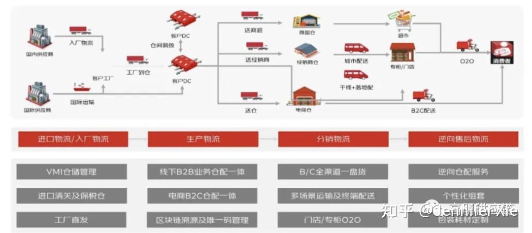 而在服装供应链、家电及家具供应链中则增加了退货以及逆向物流的服务。